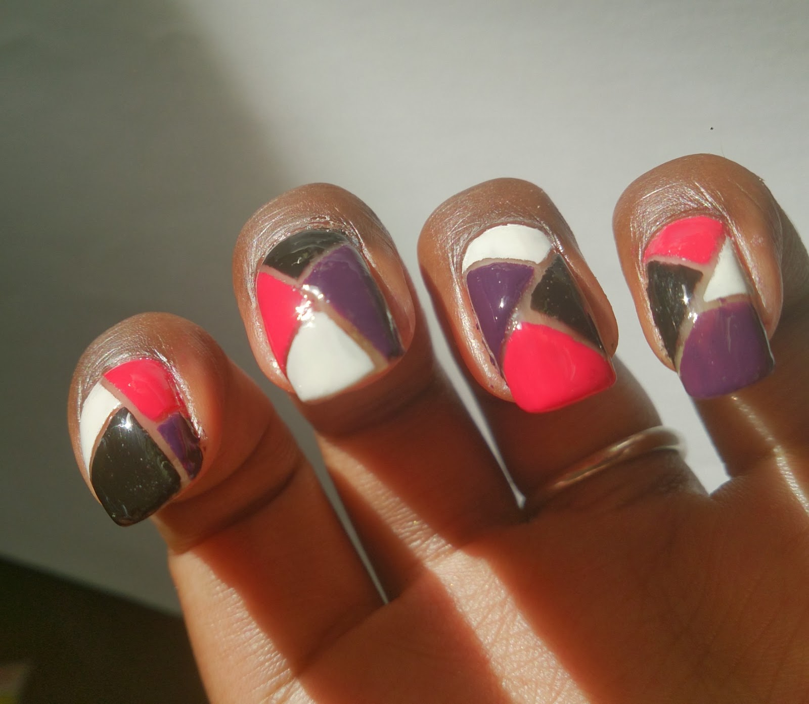 Un petit article comme ça en passant pour vous montrer la manucure que je portais cette semaine. Comme vous pouvez le voir, je ne suis pas du tout dans le thème Halloween mais je n’y peux rien, j’avais envie d’une manucure flashy et géométrique.